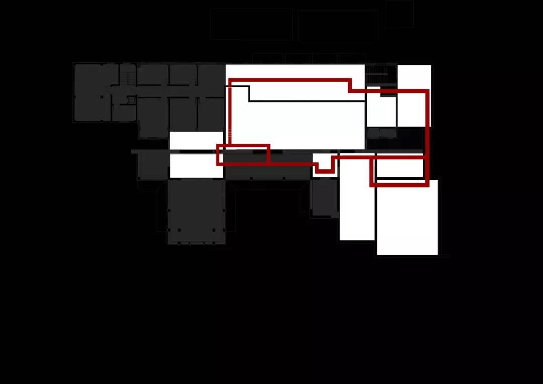 起初的設計選擇保留部分梁和二層樓板,并對切割后的梁和樓板進行加固,由內移的混凝土柱對其進行支撐并懸挑。施工過程中發現混凝土樓板加固的技術要求過高,施工隊無法完成,最終選擇以鋼結構實現最初的設計,這也造成了真實結構與結構表達的不一致。