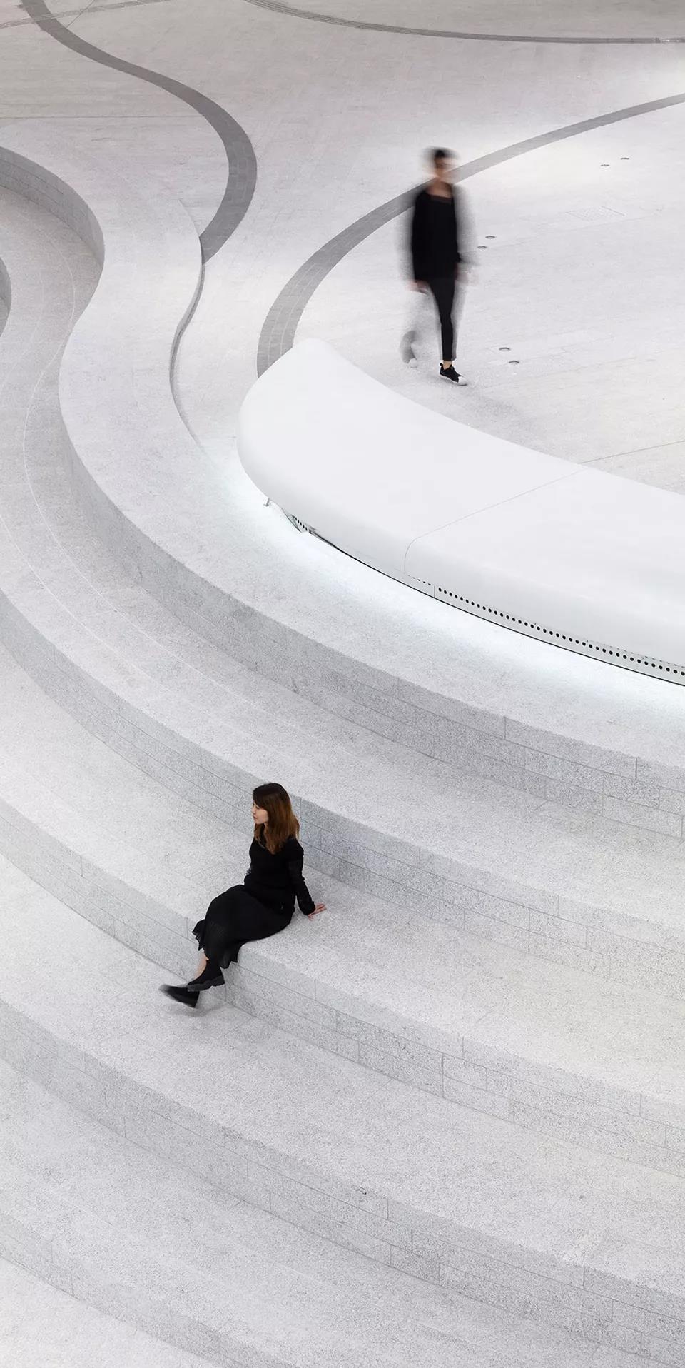 曲線型的路徑環(huán)繞著寬闊的圓形中庭,展現(xiàn)出一種以“氣”為主題的設(shè)計(jì)概念。
