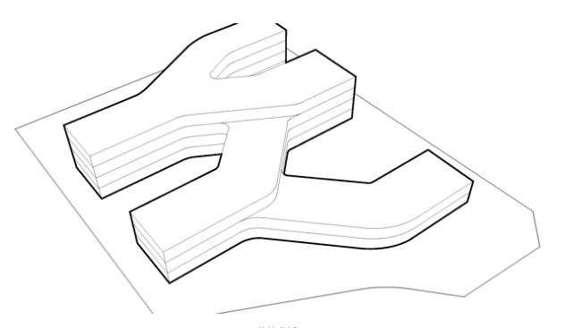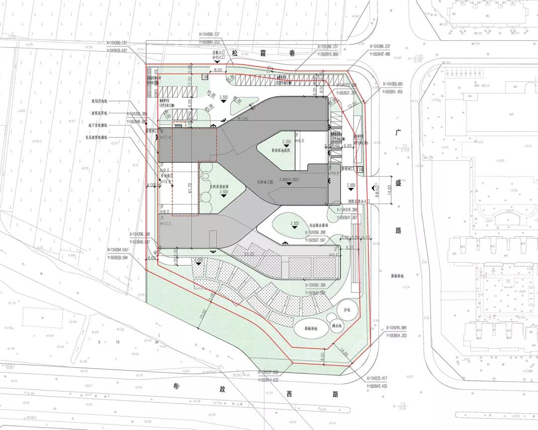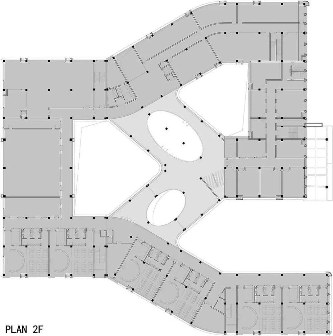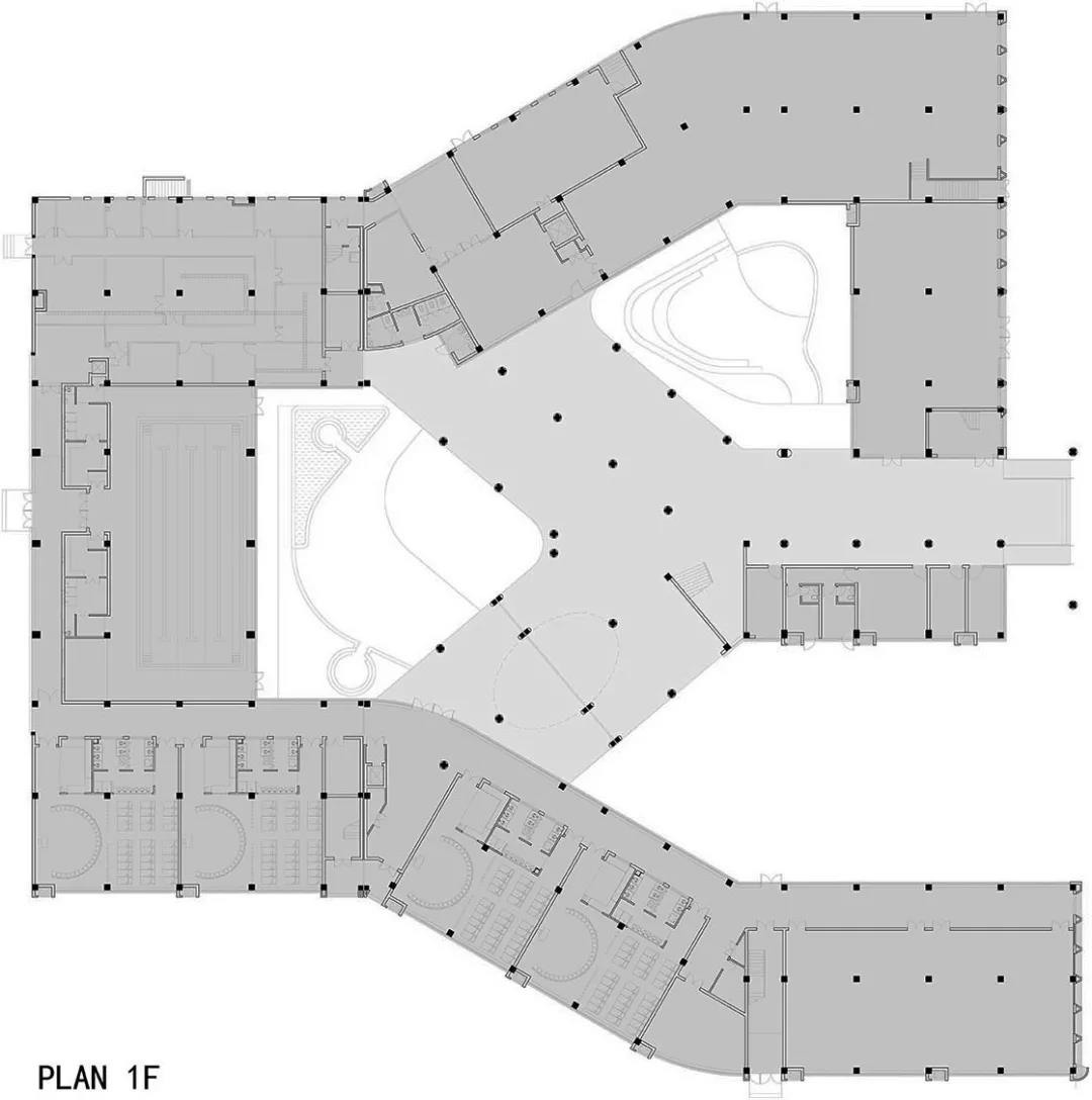 總圖的布局形成3個相互串聯的內院將封閉、半封閉以及開放式活動場地的有機組合