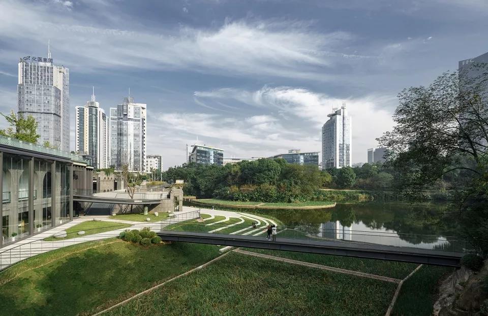 和國內很多寫字樓區一樣,照母山科技新城商務樓宇密集但是生活體驗單一,雖然寫字樓群圍繞著一個大型硬質廣場及柏林公園,但到達性較弱,公園綠化未被充分體驗,非常可惜。