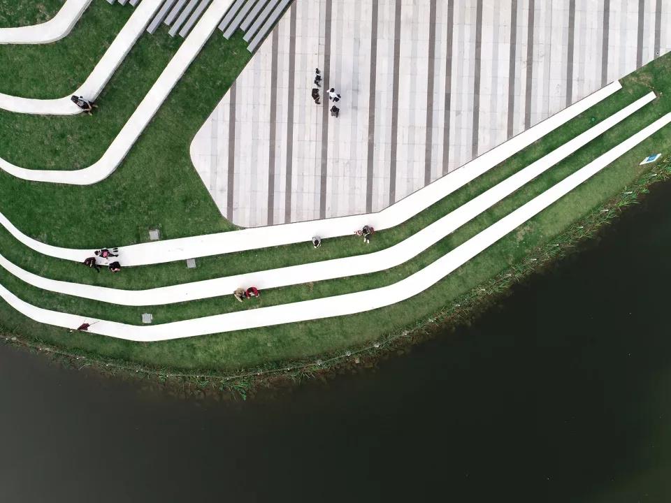 景觀草坪和濱水休憩區俯視圖