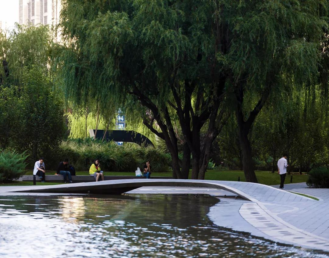 整個(gè)項(xiàng)目圍繞三座建筑分別劃分為北側(cè)、西側(cè)、東側(cè)和南側(cè)四塊綠地,不同區(qū)域表達(dá)不同的景觀主題。為了體現(xiàn)四季更迭變化,易蘭設(shè)計(jì)團(tuán)隊(duì)為望京SOHO打造了休閑劇場(chǎng)、場(chǎng)地運(yùn)動(dòng)、藝術(shù)雕塑、水景四大主題景觀。