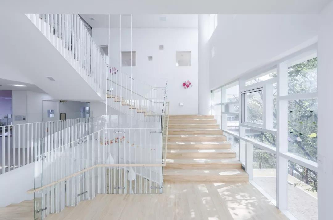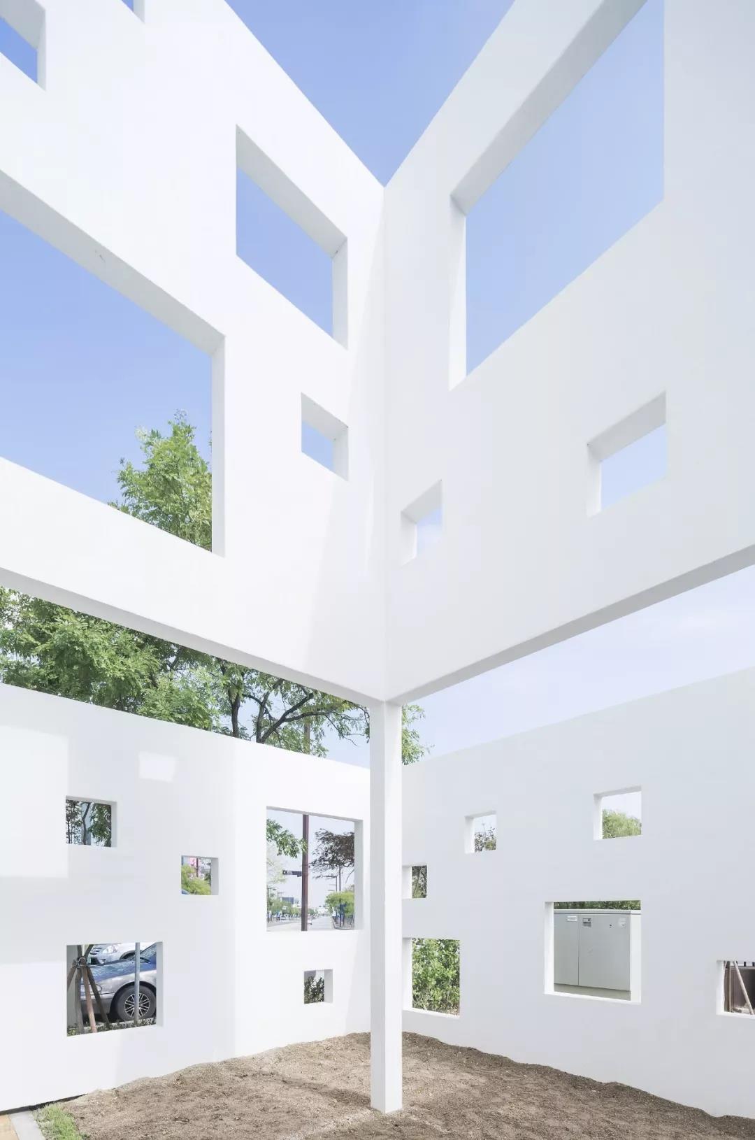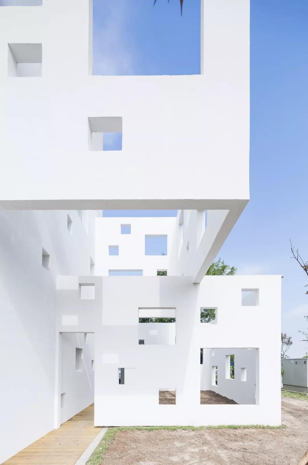 幼兒園是一個孩子們創(chuàng)造夢想和想象力的空間。孩子們有著不可預(yù)知的潛能,就像白紙一樣。生成細胞的聚集產(chǎn)生了未完成的空間拓展,沒有建筑師定義的剛性形式和空間。換句話說,由教室組成的主要單元白立方是三維堆疊的,是幼兒園的整體。這些立方細胞包含非物質(zhì)化空間的屬性,從而消除材料特性和形態(tài)完型。