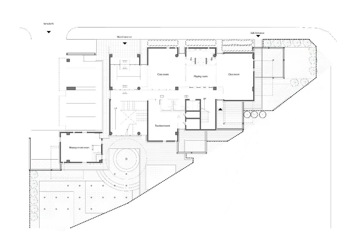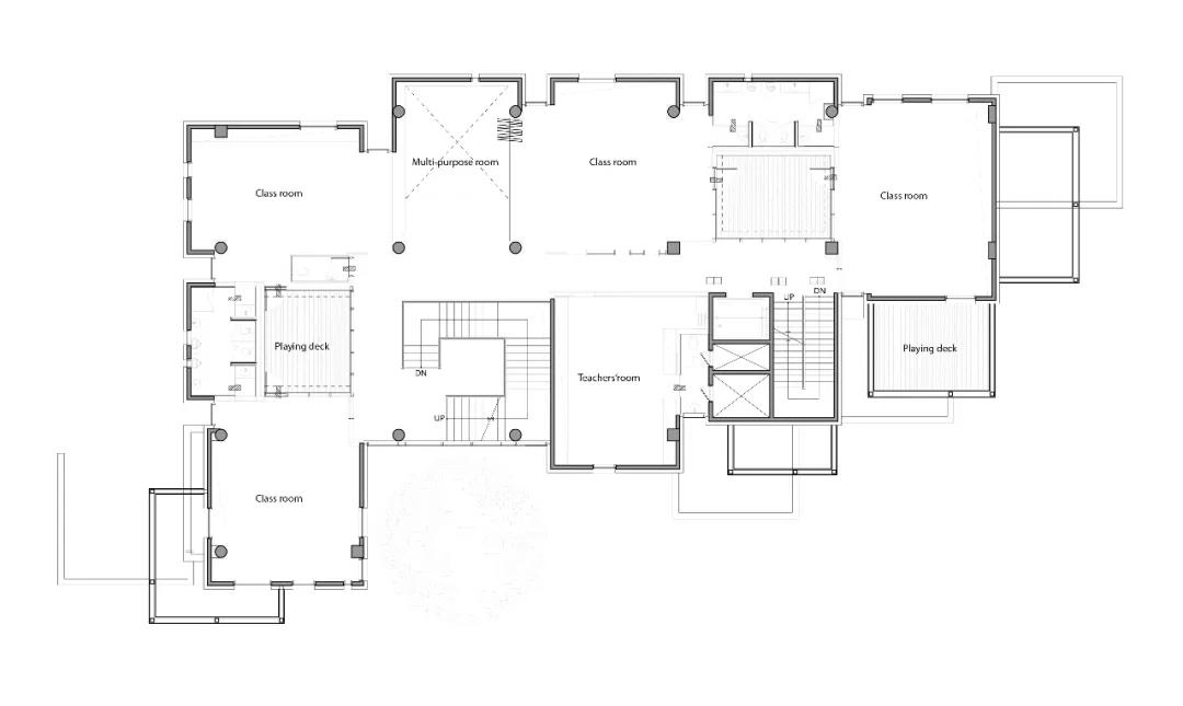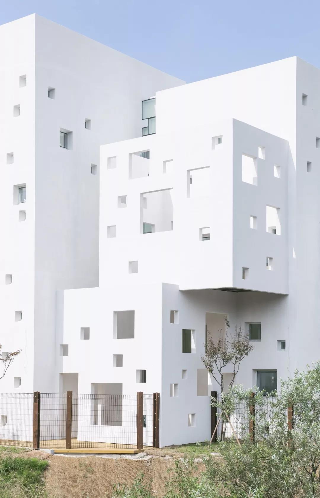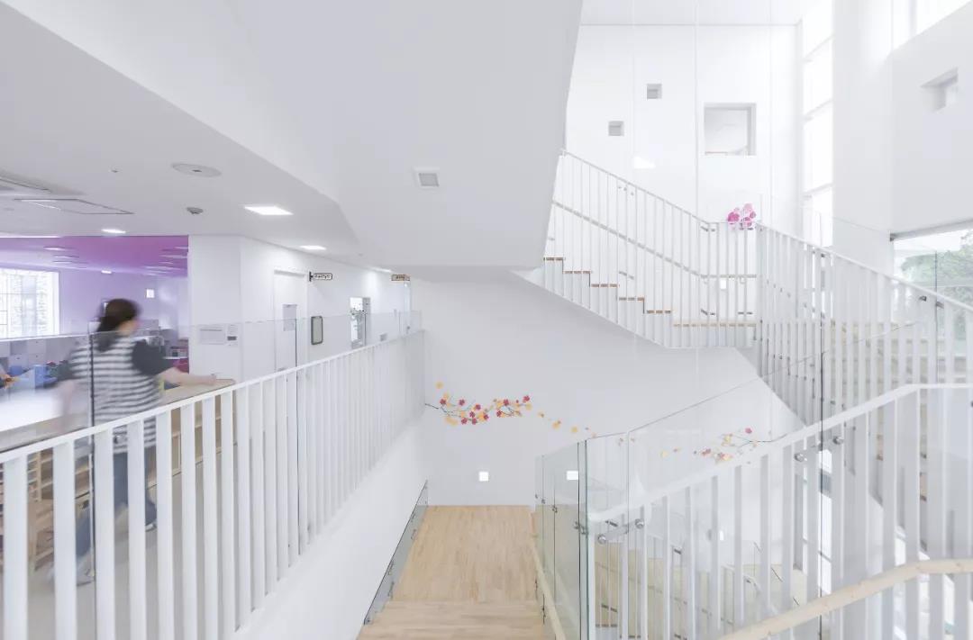 幼兒園是一個孩子們創(chuàng)造夢想和想象力的空間。孩子們有著不可預(yù)知的潛能,就像白紙一樣。生成細胞的聚集產(chǎn)生了未完成的空間拓展,沒有建筑師定義的剛性形式和空間。換句話說,由教室組成的主要單元白立方是三維堆疊的,是幼兒園的整體。這些立方細胞包含非物質(zhì)化空間的屬性,從而消除材料特性和形態(tài)完型。