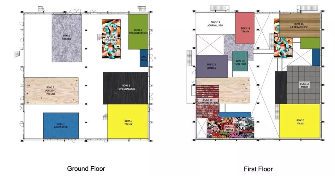 MVRDV的主要負(fù)責(zé)人兼聯(lián)合創(chuàng)始人Jacob van Rijs表示:“就像學(xué)校本身一樣,我們的設(shè)計(jì)靈感源于羅斯基勒音樂節(jié)的精神。這一精神源于音樂、藝術(shù)和行動(dòng)主義,但最重要的當(dāng)然是自由。羅斯基勒音樂節(jié)以一種非正式的方式將‘玩得開心’和‘創(chuàng)新’結(jié)合起來,讓人們感受到一種特殊的氛圍,一種我們希望在學(xué)校室內(nèi)的設(shè)計(jì)中能夠?qū)崿F(xiàn)的氛圍。”