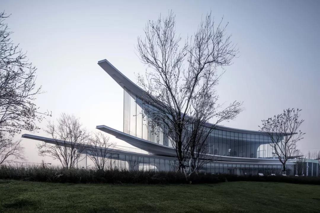 建筑謹慎而謙遜的退讓,對環境表達一種更強烈的回應;順應場地和自然的特征,可以賦予建筑更宏大的氣場。極簡的設計語言,是一種對于城市和生活的理解,使其更深入地植根土地之上,直擊人心。建筑二層整體進行了旋轉,借助地勢加深臨崖感,營造具氣勢的震撼氛圍。