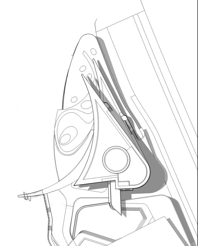 設計在啟動之初的多次場景化嘗試,在自然背景下皆顯得突兀而蒼白。然而,在一次傍晚的場地探訪中,眼見落日的余暉將城市染為單色,天地之間,山體和江灣的地理場景瞬間成為最強烈的主角;回歸設計本質,呼應場所、回應自然,啟發了正確的設計方向,進而促成方案成型。