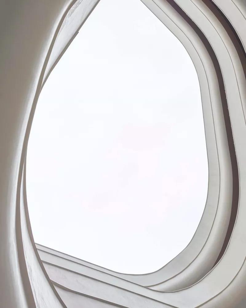 順著基地西南展開的長達160m的弧形外廓,成為立面控制性的語言。如果忽略西北角因業主要求遮蔽廚房而設的鋁格柵,整個主立面幾乎可說是“沒有設計”。最終展廳、餐飲等等各種功能空間在整個外廓框架的控制下呈現各自獨立面目——這也許可以歸結為同時作為策展人工作多年的影響吧,總希望每一個個體都有各自的呈現。