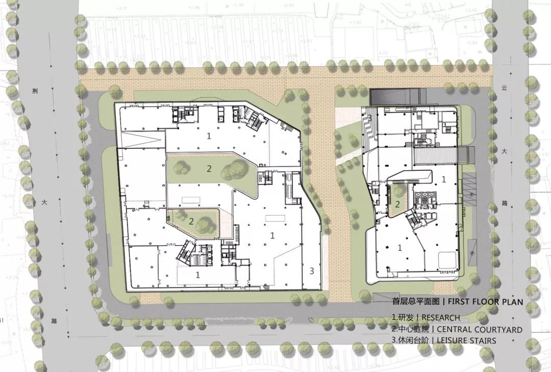 “個(gè)園”坐落于杭州市云谷單元南部的獨(dú)角獸產(chǎn)業(yè)園區(qū),總建筑面積8.5萬(wàn)平方米。獨(dú)特基址和平坦的地形條件帶來(lái)豐富的景觀(guān)資源,北面為公園景觀(guān),東南側(cè)為防護(hù)綠地開(kāi)敞空間,西北方向有方山景觀(guān),建筑布局充分利用優(yōu)良的視覺(jué)環(huán)境,借景打造中部空間的視覺(jué)通廊。