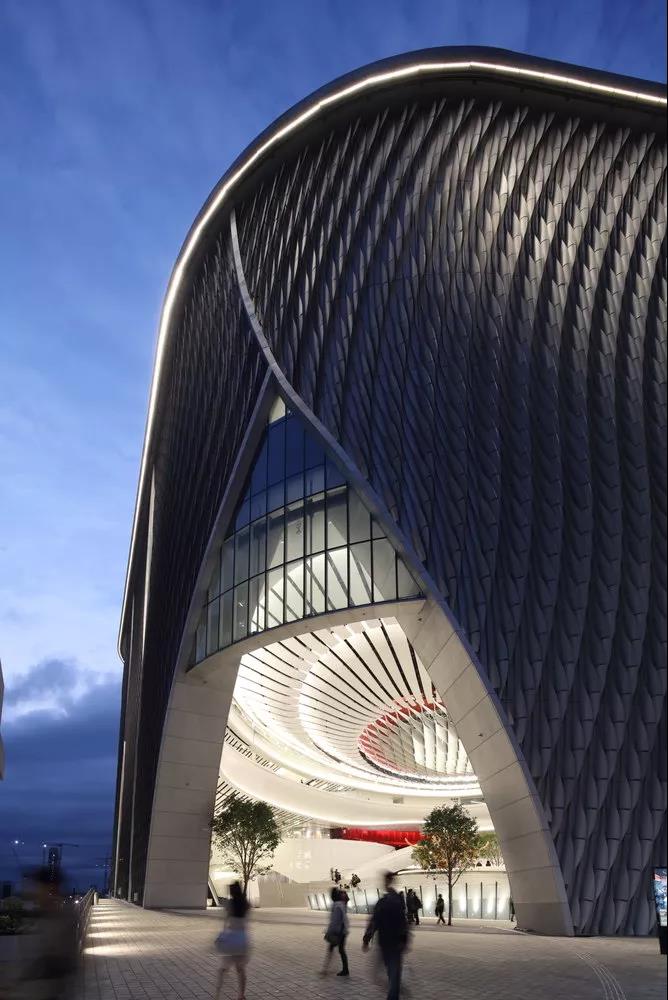 香港戲曲中心是久負盛名的中國傳統京劇的新家。其戲劇性的曲線立面和經過重新詮釋的中國月門形狀象征了通往香港新文化藝術區——西九龍文娛藝術區的入口。這個標志性的7層表演場地被設想為一個文化圣地, 融合了戲劇、藝術和充滿活力的公共領域, 致力于弘揚戲曲的豐富遺產——京劇,以及對這種獨特的傳統藝術形式的生產、教育和研究。