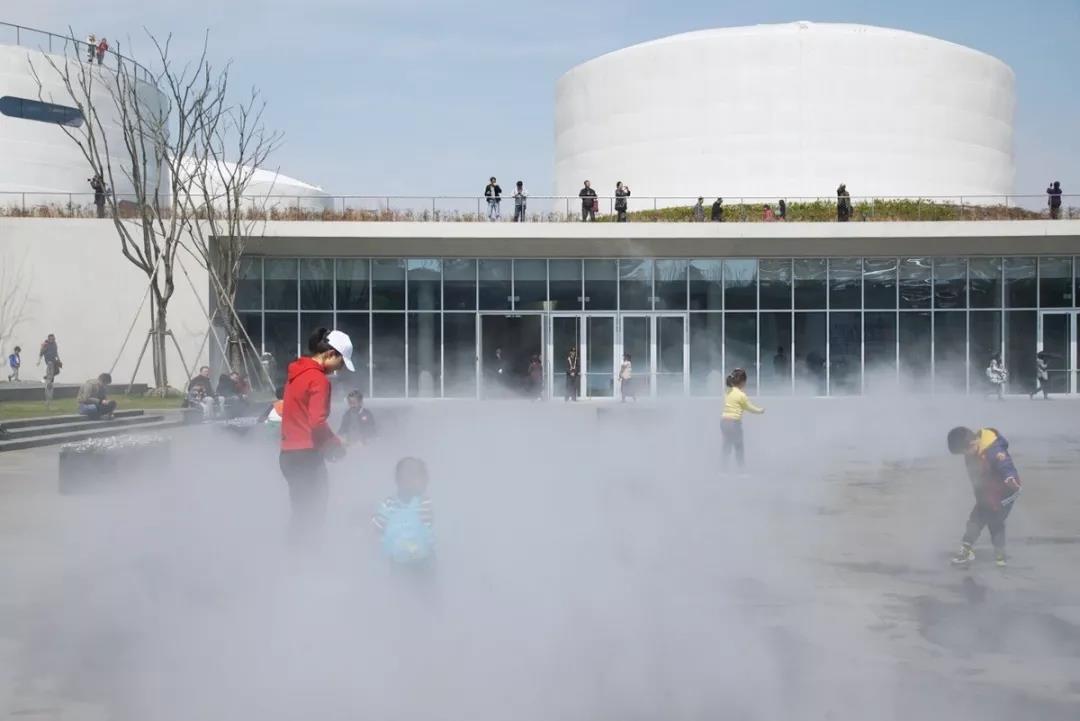 OPEN將五個獨立的油罐用一個Z字型的“超級地面(Super-Surface)”聯(lián)接起來,“超級地面”之上是高低起伏的草坡,之下是靈活連通的室內(nèi)展覽與服務(wù)空間。兩個開闊的廣場和一片都市森林(僅部分完成)將植被、水景、小展廳等自然地聯(lián)系起來,其間散布公共藝術(shù)作品,邀請人們在自然與藝術(shù)之間自由穿梭。