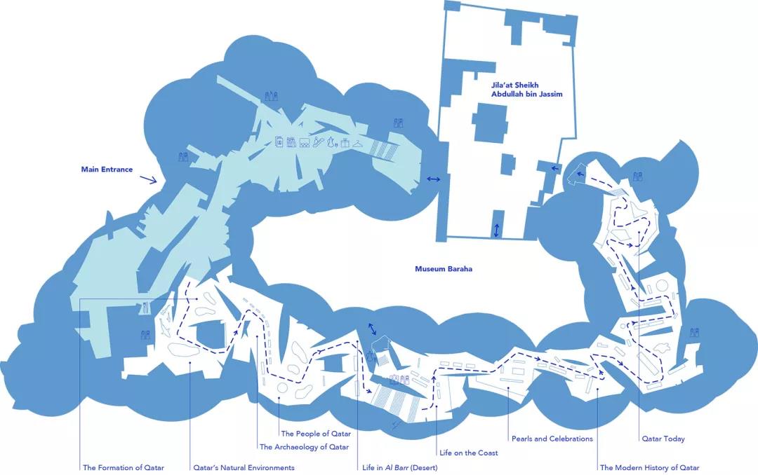 館內(nèi)包含11個陳列展館,帶領(lǐng)訪客穿越卡塔爾從數(shù)百萬年前的一個半島 ©Iwan Baan