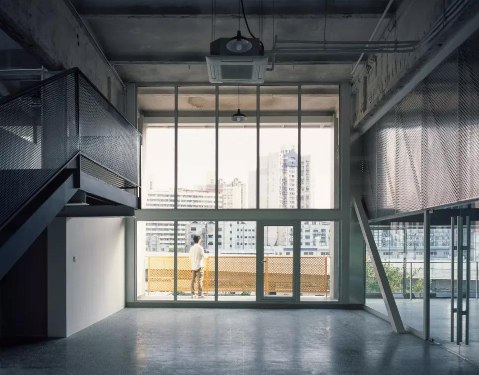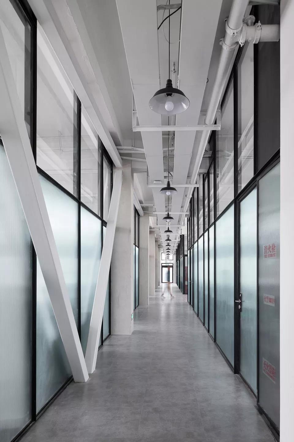 最后,我們用廊橋把兩個庫房頂層辦公空間連接在了一起。