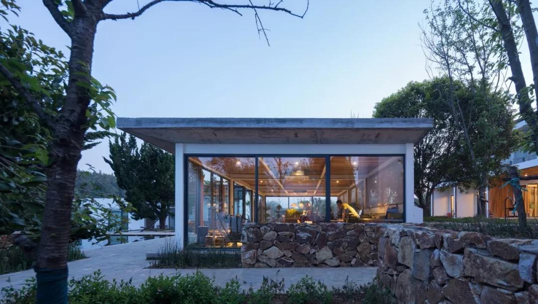 原舍平湖便是利用白鷺湖畔最深處這一組臨湖的廢棄公房改造而成。房屋前湖后崗,面朝湖水,背靠綠林。