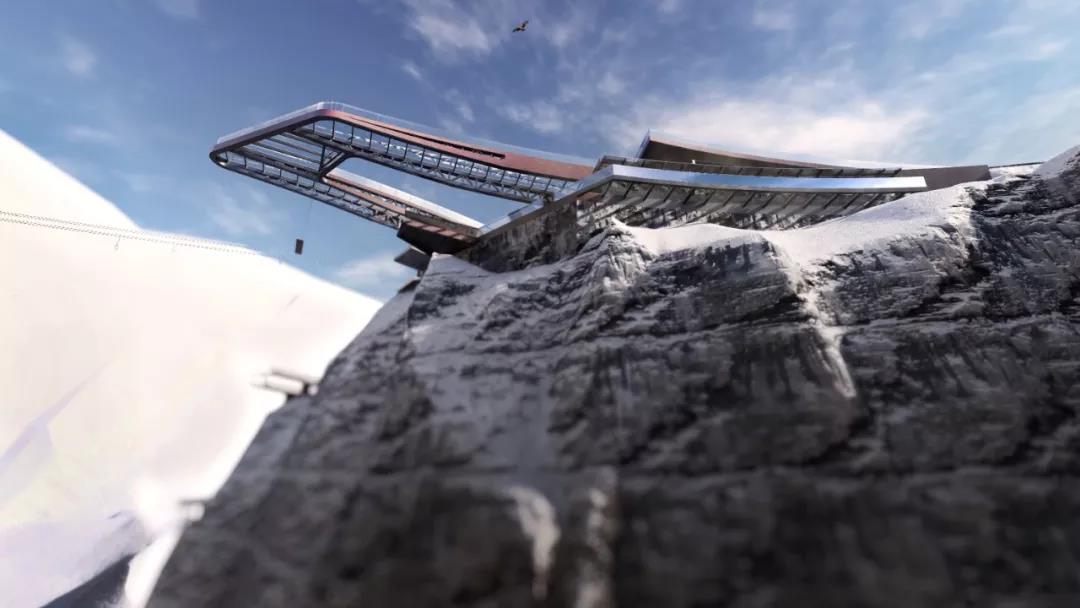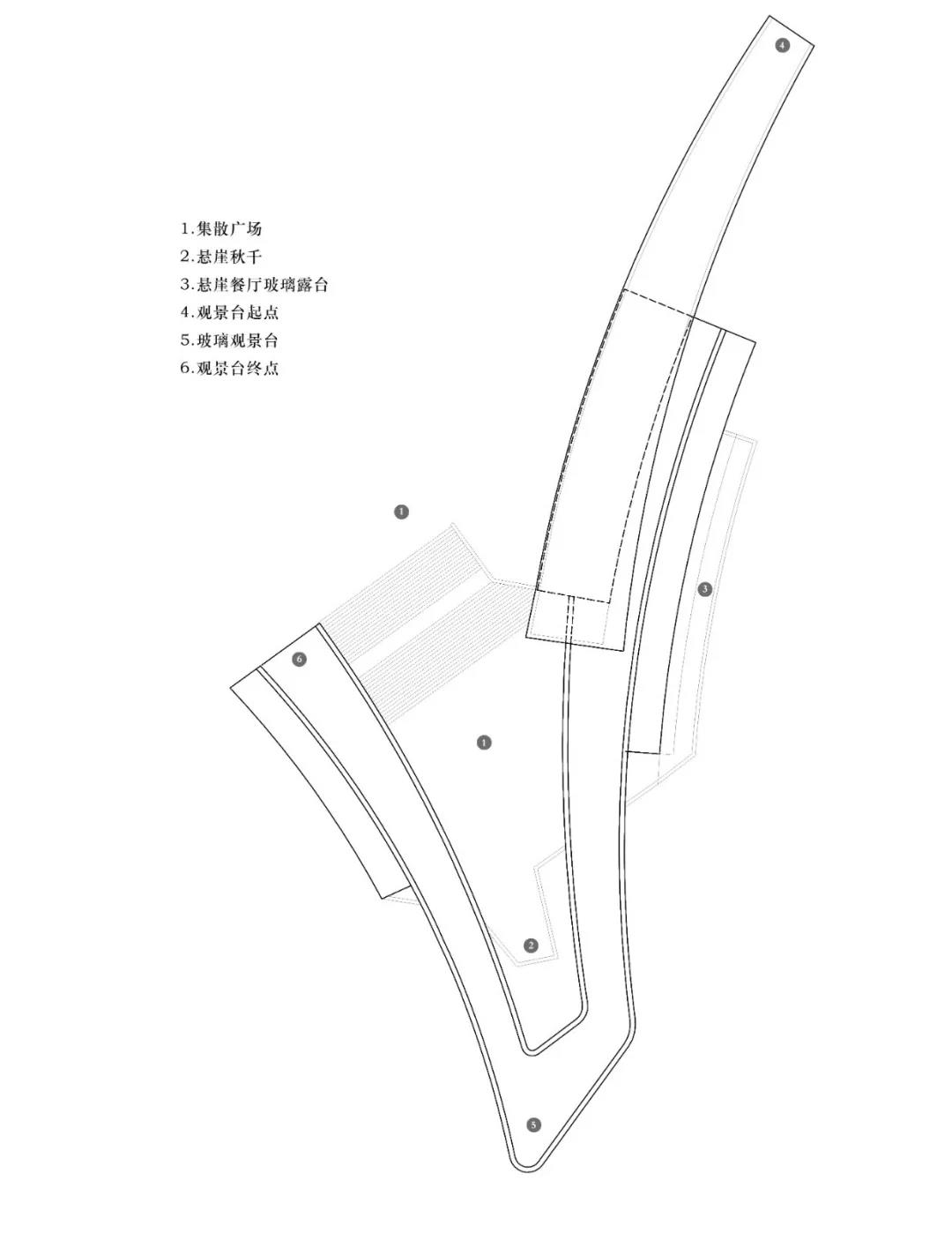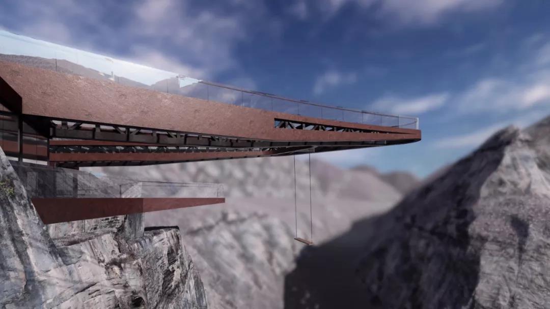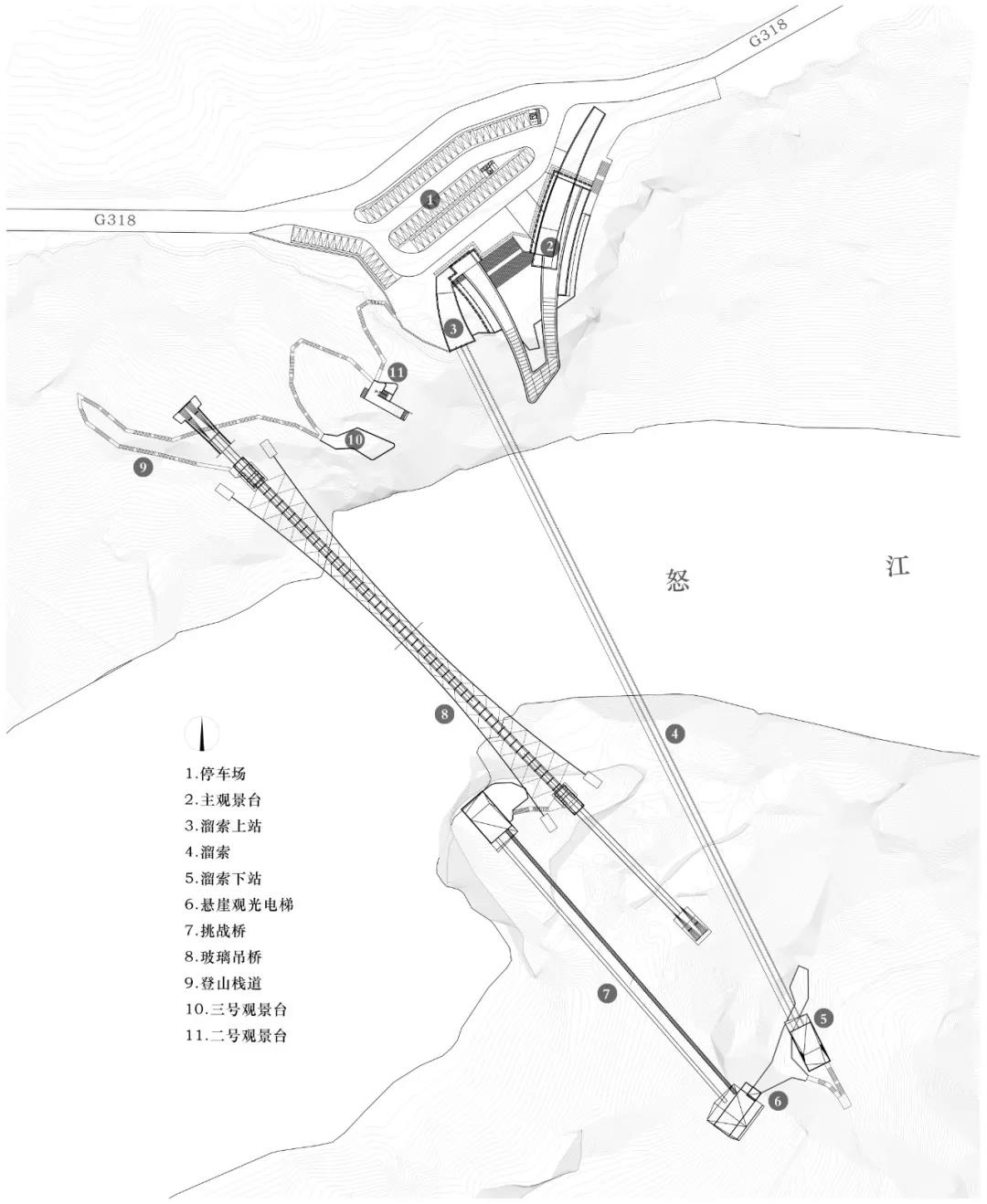 主觀景臺(tái)集接待中心、展覽館、懸崖餐廳、多功能超市、公共衛(wèi)生間等功能于一體。項(xiàng)目同時(shí)融合跨江滑索、懸崖秋千、懸崖觀光電梯、挑戰(zhàn)橋、跨江玻璃吊橋、登山棧道等觀光游樂設(shè)施,使整個(gè)項(xiàng)目具有更豐富的參與性和互動(dòng)性。