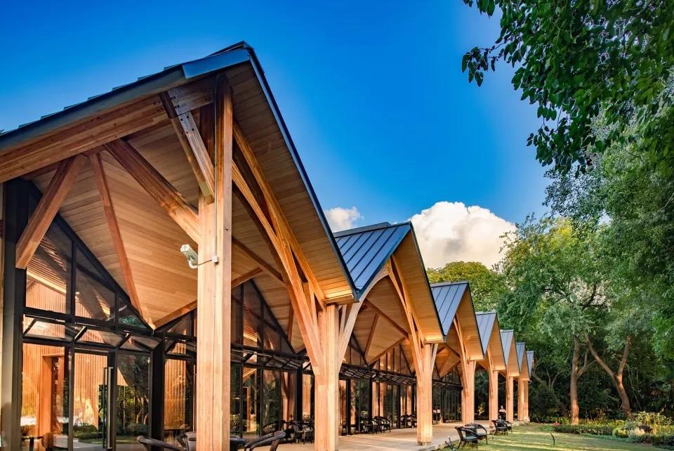 木結構及其施工方式的選擇,使得整個建造過程盡量減少對場地的侵擾與破壞,最大限度地保留了原有的樹木及景觀氛圍。木材這種生態材料的運用,使自然、綠色、可持續發展的建造理念真正得以實現。