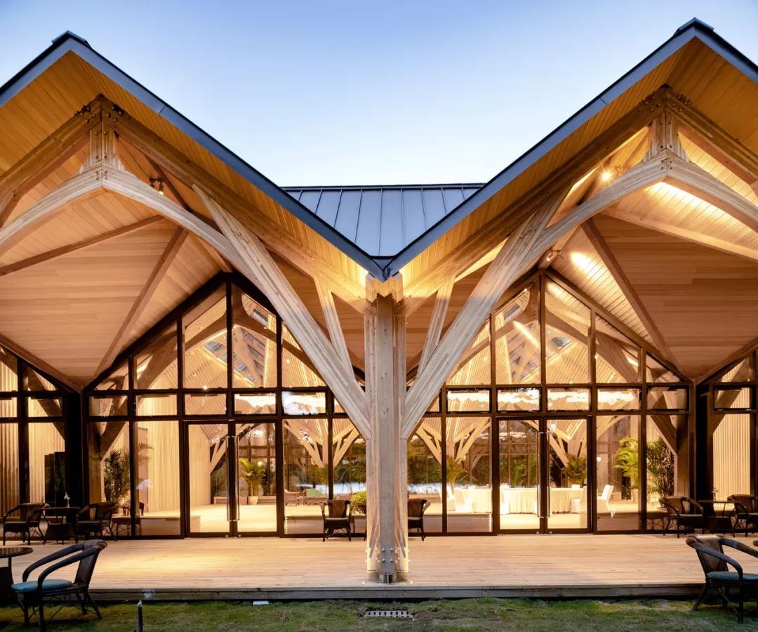 建筑以較小的建造代價,塑造了精彩的空間與迷人的形式,充分體現了木結構自然、溫暖的質感,以及幾何學與力學的美感。