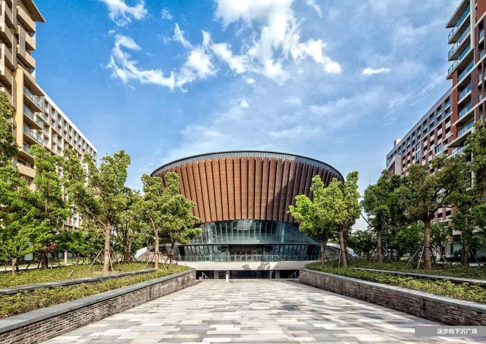 建筑地埋一層,削減建筑高度,巧妙的打造出西高東低的雙心橢圓形斜屋面