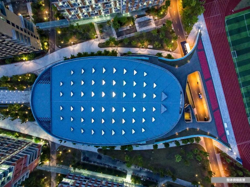 屋頂的天窗更考慮結合結構的菱形拉索形成的三角空間,設計成斜向的三角形天窗,從而在引入自然光線的同時,也為屋頂增加了富有趣味與韻律的點綴。到了夜晚,從三角天窗透出的亮光,更是點燃了整個校園的******與活力,成為校園中最吸引眼球的璀璨建筑。