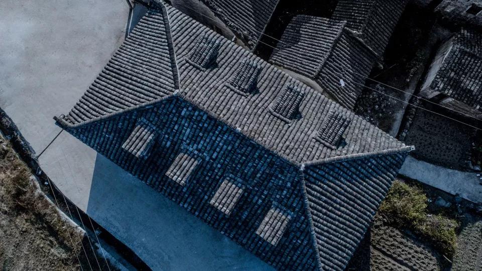 初入奇峰村,村里的房子透著一股簡樸實用的拙勁兒。沒有徽州古鎮宅院的復雜格局,沒有名家大戶里木雕屋架裝飾,只有寫滿年代感的小青瓦的坡屋頂,方洞窗,偶爾的一點披檐和山墻,就是精心的點綴。村口的房子多為公共建筑,如碾坊、農具庫、公社隊屋等;村民住家則藏在后山深處。