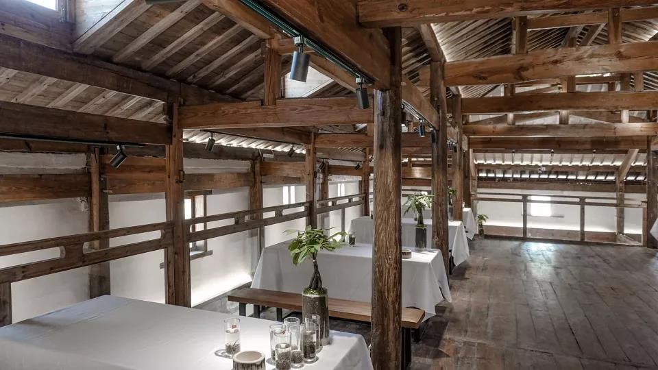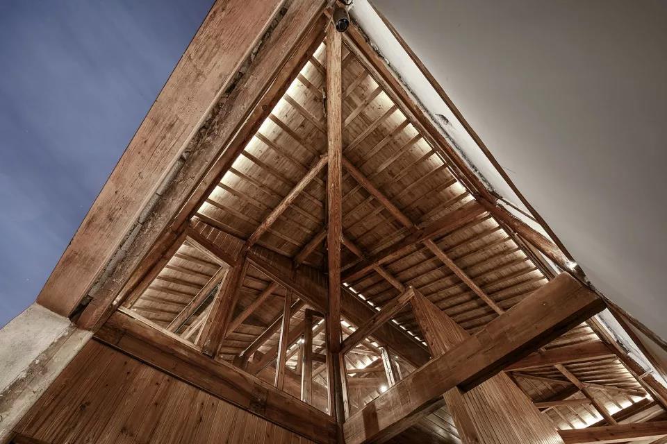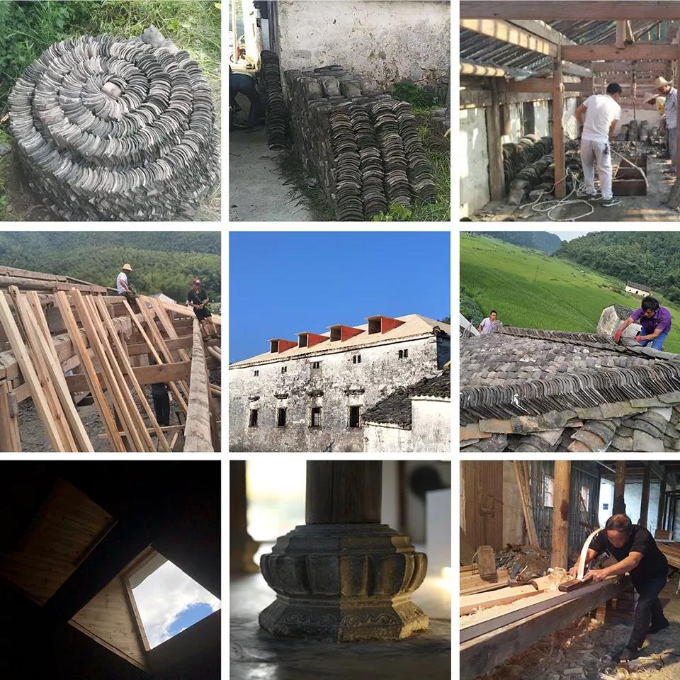 在著手修整前, 設計師和工匠們先檢查了一遍隊屋木結構和墻體的現狀,確定了以下幾個最要緊部位的修復方法:屋面,木構架和外墻。原屋面為單層小青瓦防水, 漏點較多,需增加屋面木望板和卷材防水層,再搭瓦。