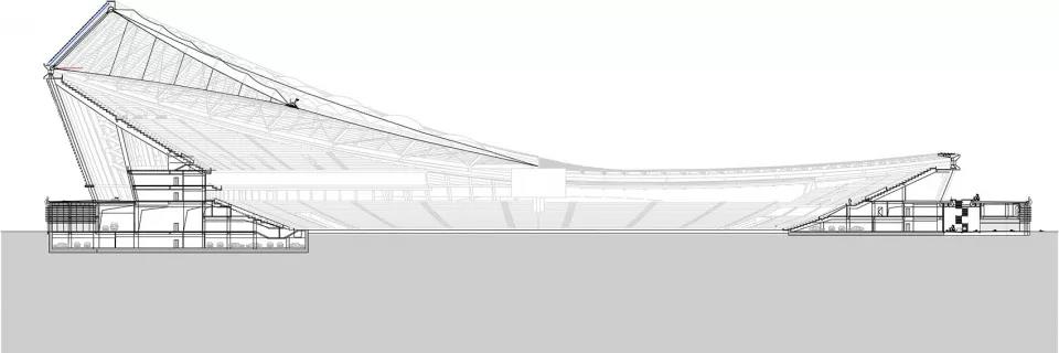 非對稱布局體育場概念手繪 ©gmp Architekten
