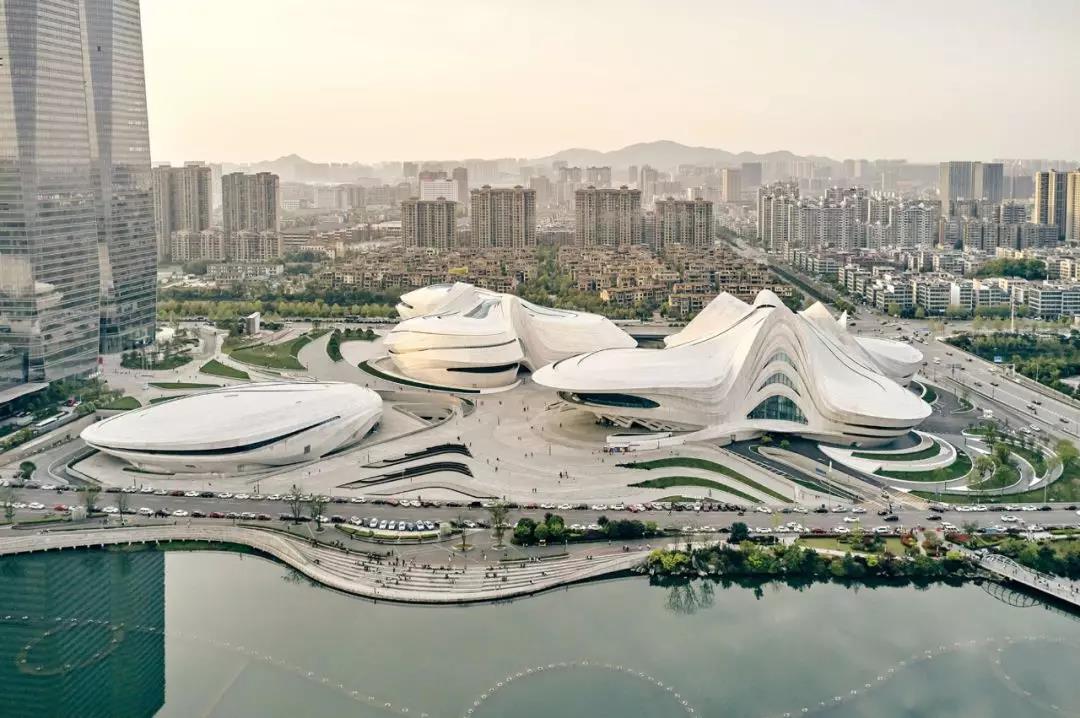 扎哈·哈迪德事務所在長沙梅溪湖設計的國際文化藝術中心接近完工。這個建筑面積高達 11.5 萬平方米的文化綜合體涵蓋了一個劇院和一個現代藝術博物館,在三個花瓣狀的體塊中間,扎哈·哈迪德事務所還設計了一個小的多功能場地。