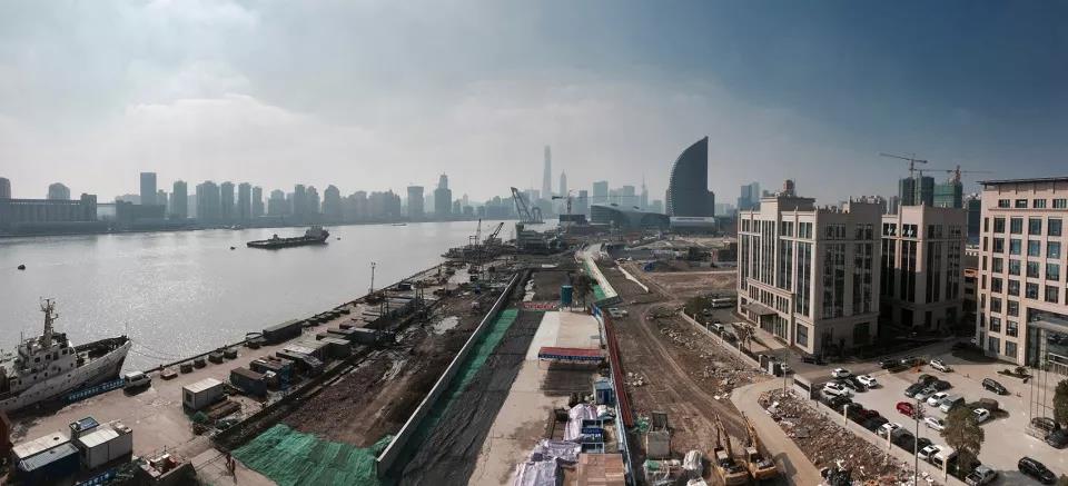 基地位于上海母親河——黃浦江的兩個輪渡站之間,屬于楊浦濱江南段二期,擁有近1.2公里的水岸線。大約一個世紀前,楊浦濱江沿線就已經有了服務于上海的電廠、自來水廠、煤氣廠等市政設施,除此之外還有大量與紡織和制造相關的工廠,十分繁華。