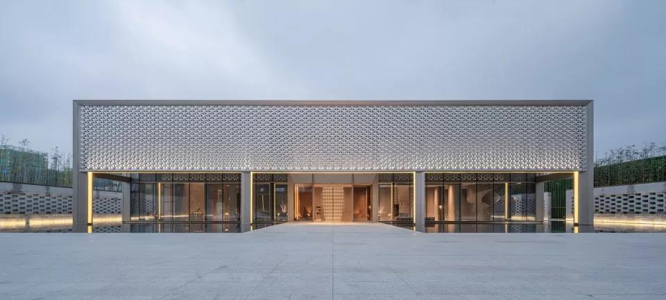 項目位于重慶中央公園片區。建筑設計運用現代的語言,重新演繹了傳統的空間精髓。總體布局遵循中軸對稱、前堂后院、多重院落的傳統空間格局。通過片墻、立柱、屋檐,限定出不同尺度和開放度的院落和框景。