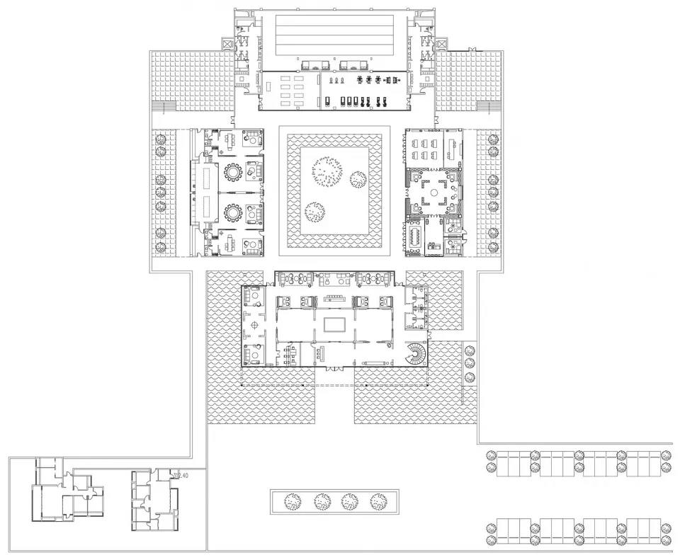 一方面通過實現的技術方式,讓簡單的設計具有豐富的細節。另一方面通過理性的解構重組,將復雜的設計清晰地表達出來。內院三面圍合的大挑檐在體量上與主樓脫離。