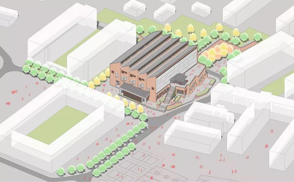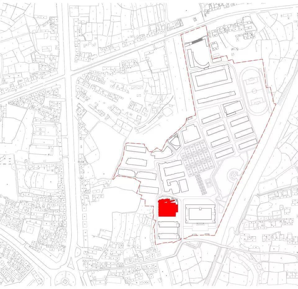 和大多數中國的中學一次規劃、一次完成不同,錦弘中學是一所隨著時間推移不斷擴大和變化的學校。也因為如此,體育館并沒有像大多數學校一樣位于校園中顯赫的位置。而是坐落在校園西南一隅。
