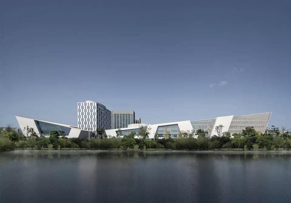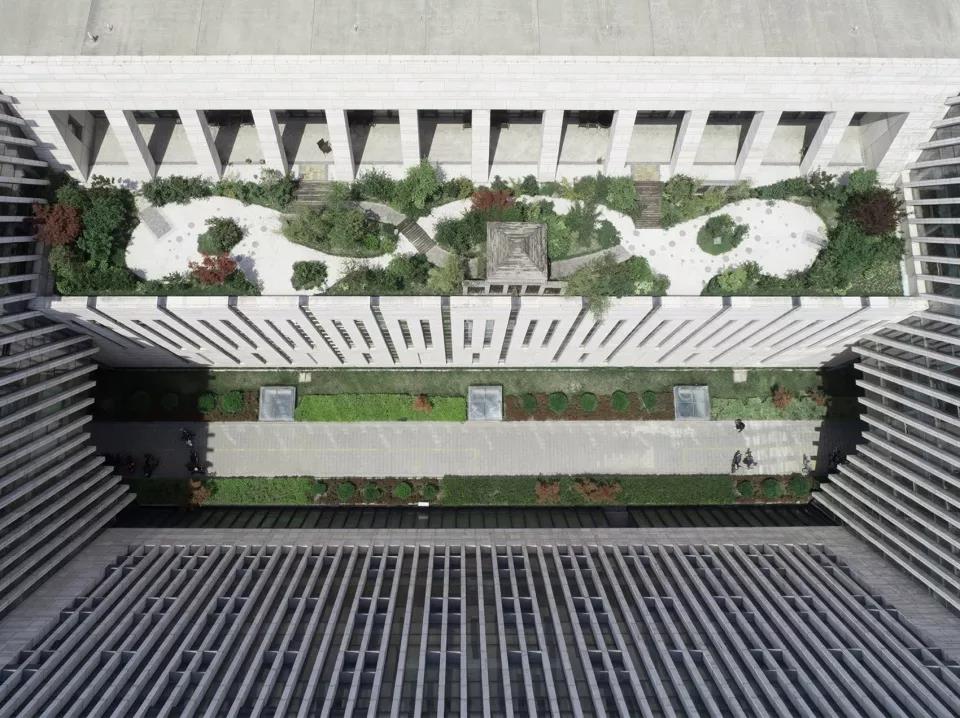 景觀滲透:通過(guò)壓低建筑的中部,將各館脫開成庭院,輔以各式灰空間,實(shí)現(xiàn)室內(nèi)外交融,并與周邊城市開放空間互為滲透,為相鄰待開發(fā)地塊留出景觀綠脈和視線通廊。