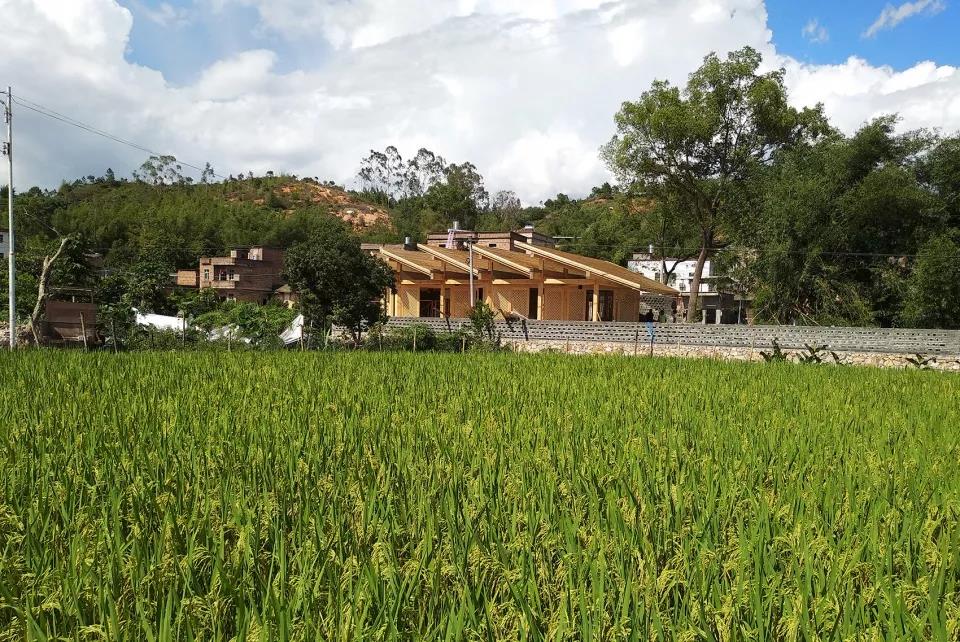 基地周邊地塊多為村舍和農田,地塊大致呈梯形,中間被東西向村路橫穿劃分為南北兩塊。基地西南側有小河,河的南側是半月塘和祠堂;西北側有山景,視野開闊;東側的村路是進入場地重要道路,村路與場地之間是一片狹長的綠地,綠地內有兩棵大樹和一排竹子,再往東就是中山紀念小學。