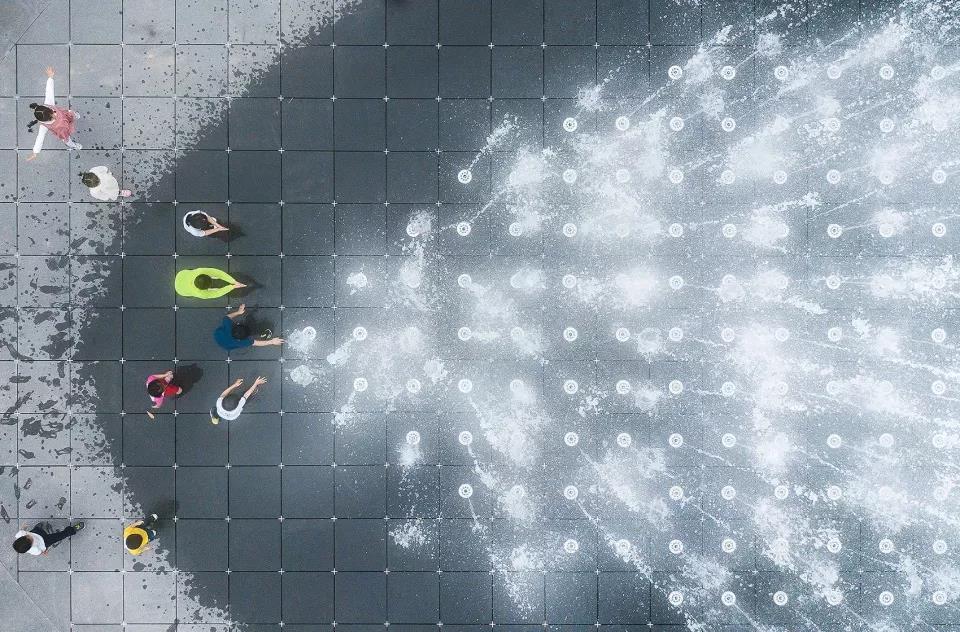 創新一方由四季之門、橢圓形音樂旱泉廣場和地形草坡組成