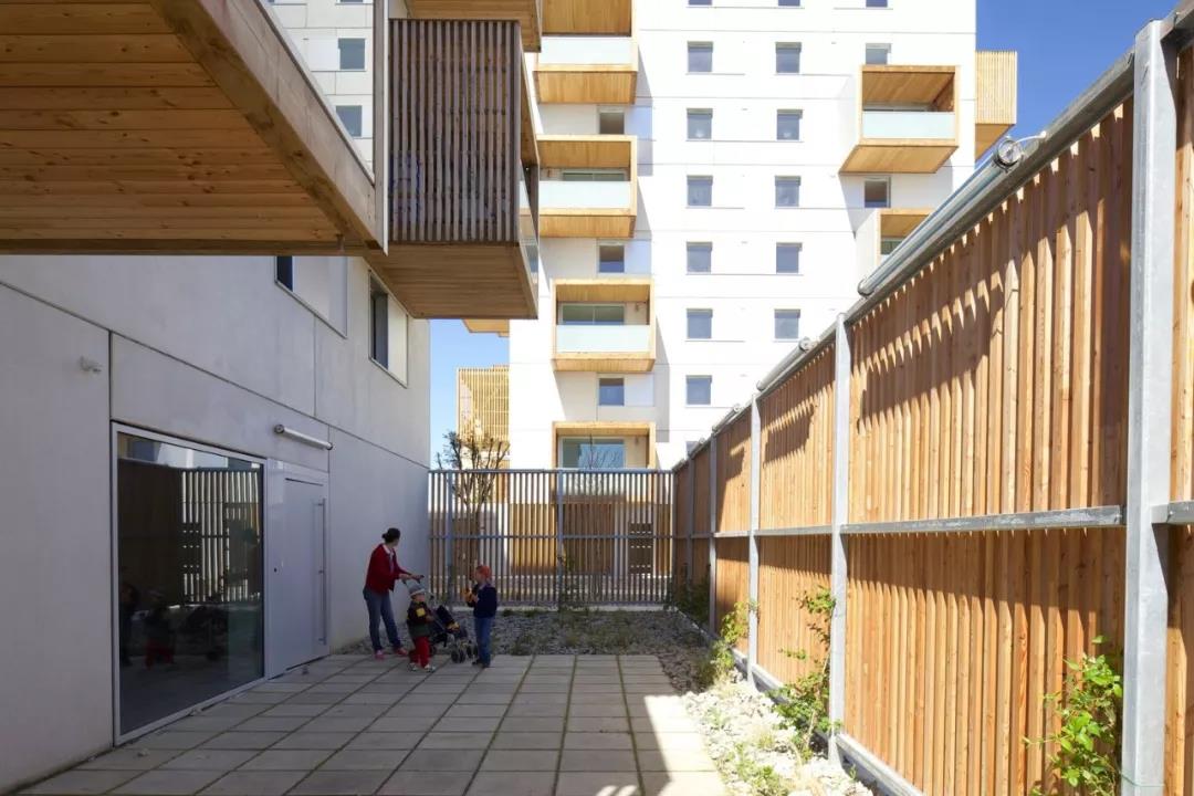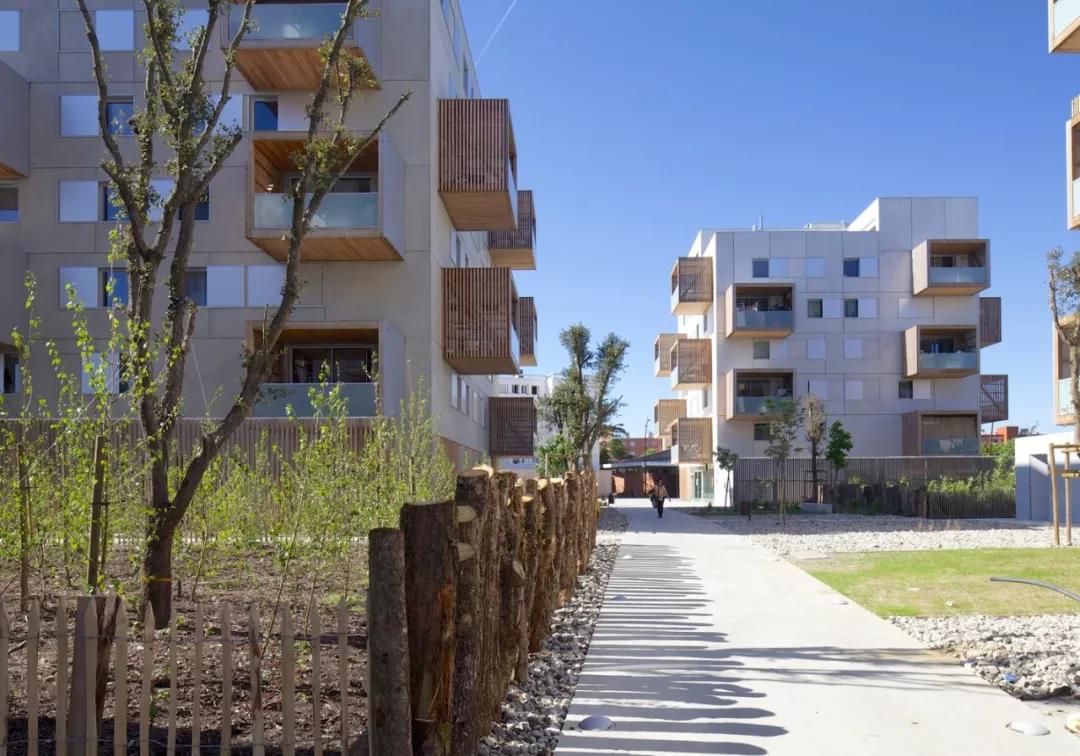 人行中央廣場有每周一次的集市,有商店以及許多協會組織在房屋底層的鋪面……一些能使這個居住區生氣勃勃的空間。這個建筑項目通過與外部建立一種和諧關系,并與自然緊密聯系,來試圖回應潛在購買者“對房屋的渴望”。