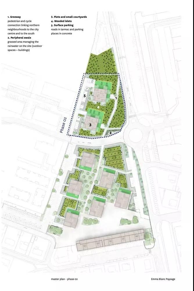 南北軸上的一條步行小徑和自行車道重新建立了舊中心與北米雷的聯系。一條新道路讓人們可以東西向穿行,并合理地重新組織了從內部到社區外部的交通流線。