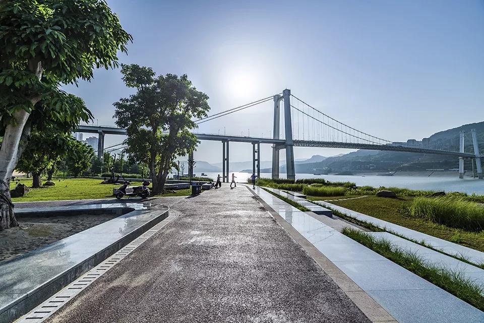 我們在針對重慶市萬州區長江二橋濱水空間進行設計時,提出還原濱水空間最初風貌,生態自然低碳的景觀理念,打造人、自然、城市和諧共生的生態型濱水公園。設計充分彰顯了水域景觀的文化性,將當代文化藝術與地域濱水文化相結合,從而勾起人們對于濱江文化的懷念,為城市增添新的名片。