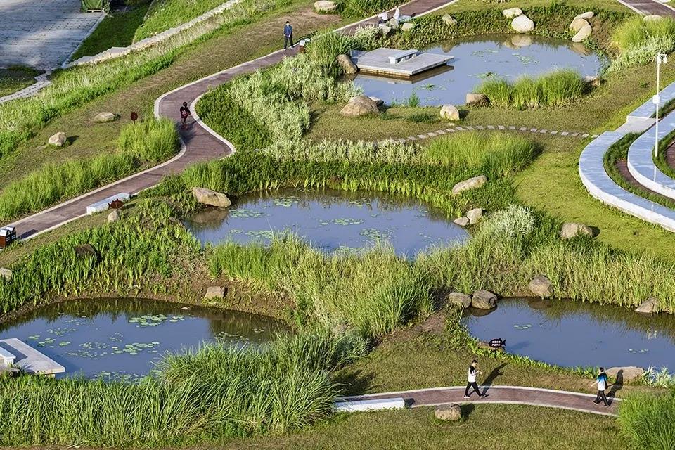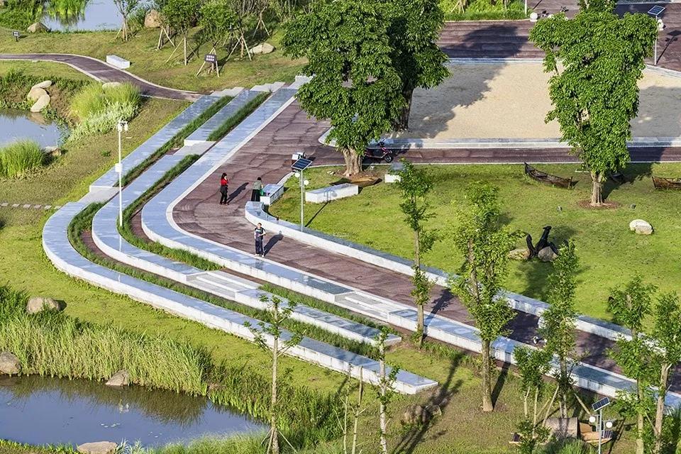 175m高程以上的區域,局部抬高現狀地形,營造陽光草坪、兒童沙坑、草地臺階、自行車環道等供人們休閑體驗的多功能復合型景觀空間。