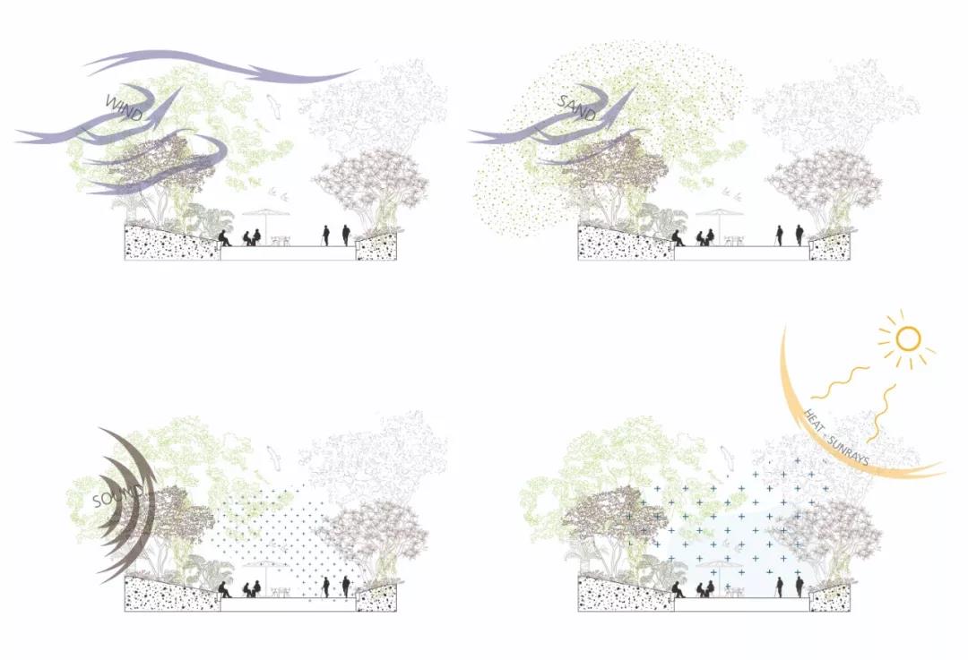 設(shè)計對公共領(lǐng)域給予了重點關(guān)注,包括改進湖濱長廊、保證充足的街景和大道植被、在整個建筑中構(gòu)建半公共植物空中花園,以及促進所有城市元素(座位、照明、自行車道鋪設(shè)、護柱等)的綜合設(shè)計。
