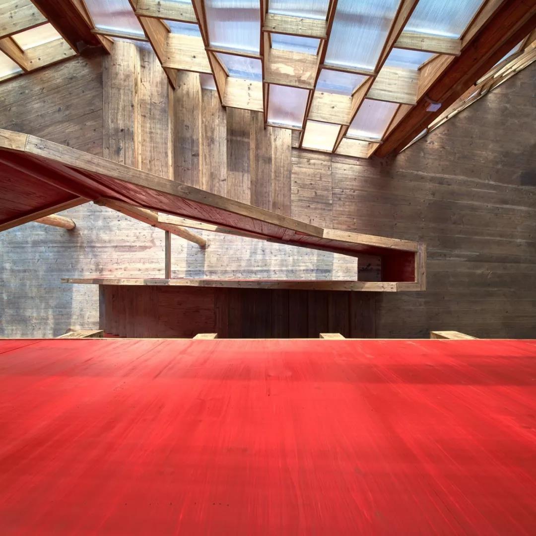 高步書屋面積約二百平方米,主要由木屋架組成。底層中心處貫通整座書屋的樓梯,是它的標(biāo)志性元素。書屋底層的開放空間讓村民可以休息,或者舉辦展覽和其他活動(dòng);二層和三層則由不同主題的圖書書架構(gòu)成外墻,樓梯的設(shè)計(jì)緊貼著由半透明陽光板構(gòu)成的書屋立面。