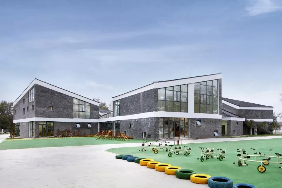 在附近村鎮(zhèn)考察時,我們也曾見到很多典型的“教學樓式”幼兒園——隔絕環(huán)境、局限視野的大體量高層立方體,以及高度重復(fù)的單調(diào)立面,將一種相對孤立的“都市邏輯”植入了鄉(xiāng)村既有的空間語境,像個外來的闖入者,而不是令孩子們感到熟稔、自在和溫暖的“第二家園”。當?shù)乇姸嗔羰貎和母改竿斀袢珖鞯氐泥l(xiāng)村青壯年一樣,選擇季節(jié)性地外出打工,錯過了自己孩子成長的大部分時光。所以對于這些孩子而言,幼兒園確實就是他們的第二個家。
