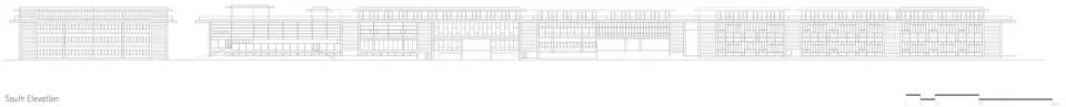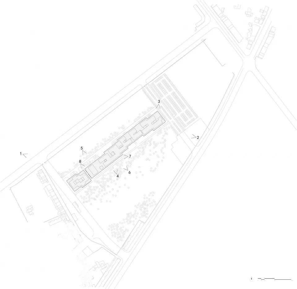 文化中心綜合體被視作連接工業園區與自然景觀的紐帶,其建筑空間由一系列帶內院的館所以線性排列的方式組成,而形式語言則由深檐和木板墻等低調的本土化詞匯所構建。