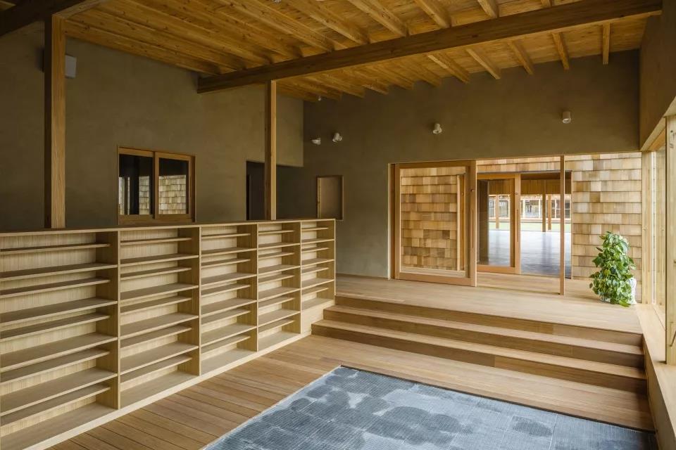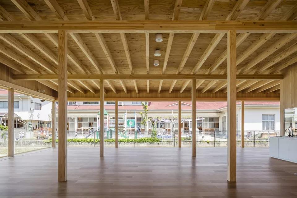 本項目是一個單層的木結構體量,室內外皆采用木材打造而成,旨在讓孩子處于一種能夠隨時感受到樹木的溫暖的空間環境中,同時,也讓他們能夠感受到歲月的流逝。多功能廳和幼兒園空間采用自然通風,以減少空調的使用。此外,所有的木構件都朝向室外打開,必要的時候還可以跟花園融為一體,形成一個完整的空間。