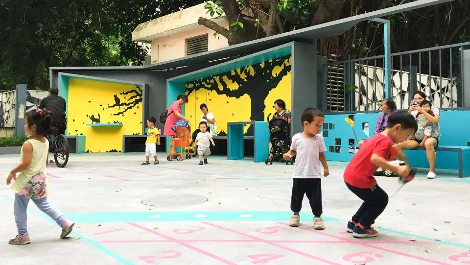 地面圖案:簡易的地面游戲圖案,為非出行高峰時期的兒童及放學后的學生提供片刻自在歡樂的玩耍空間。
