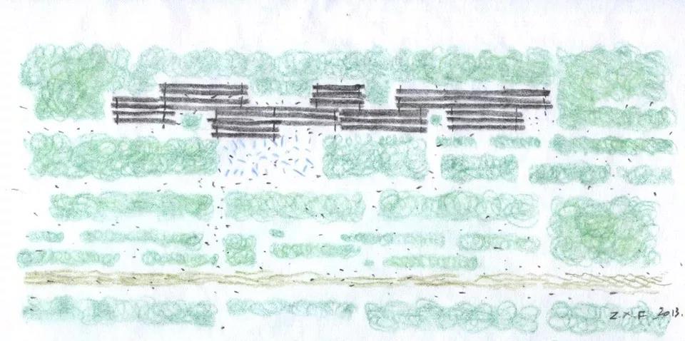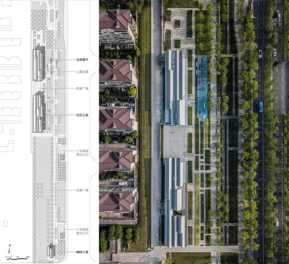 隨著浦江西岸的貫通開發,有著百年歷史的龍華機場被改造成城市干道旁的跑道公園。在這條南北縱向的城市綠化帶中,我們設計了一系列為公園和社區服務的小建筑。云錦路活動之家是這個系列里比較集中的一處聚落,由社區之家、咖啡小屋、法南餐廳三座建筑組成。
