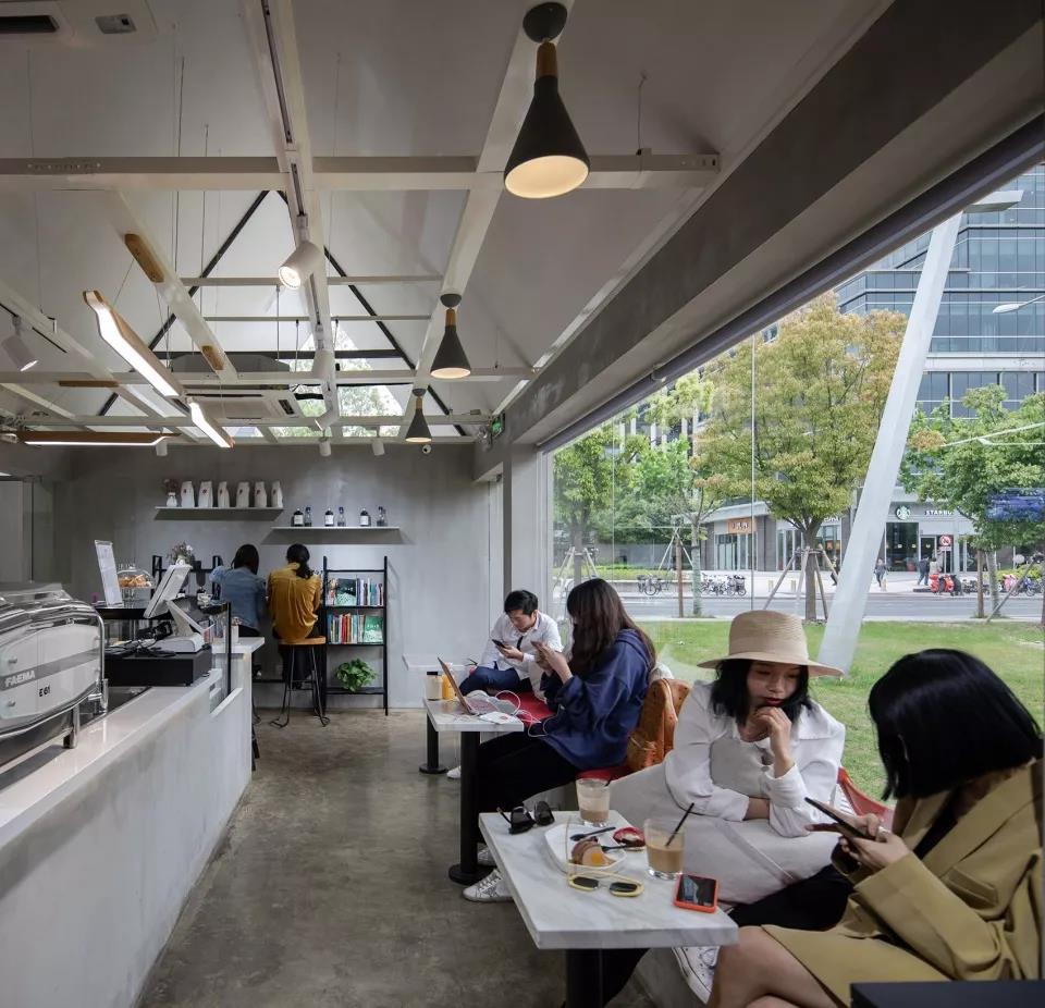 咖啡小屋入住商家為CoffeeCall,人們在小巧可愛的建筑中與友人相聚,享受咖啡美食,這里已然成為了網紅咖啡屋。