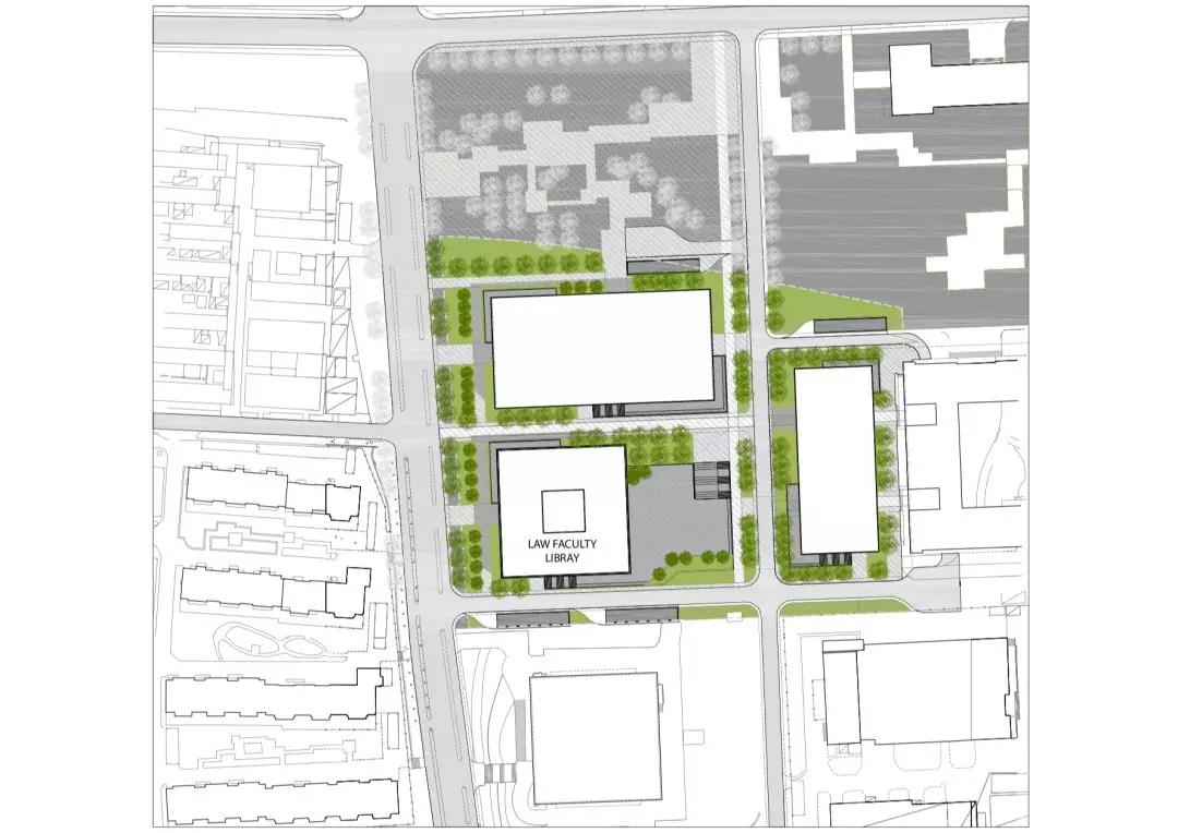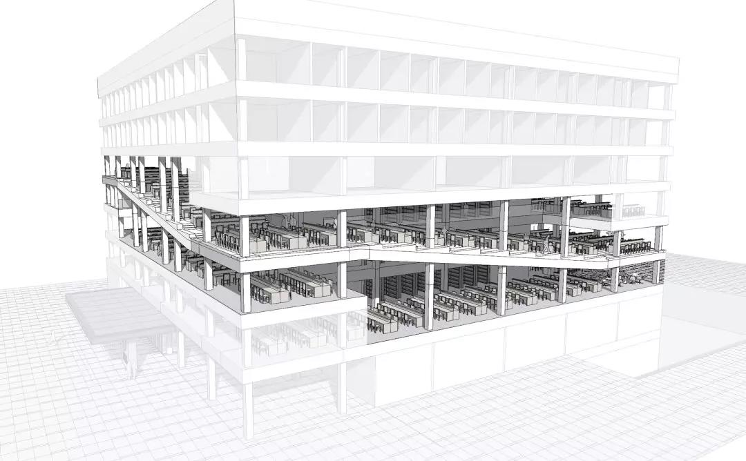 Kokaistudios設計的2萬平方米新建筑是校園既有規劃的建筑群之一,其重要性為呼應群組下沉區的主題景觀,也兼容開放及封閉兩種形態的人行道,“二元性”是新圖書館的核心理念。