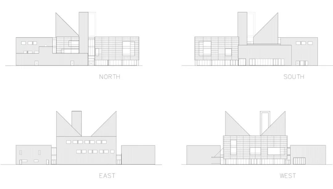 不同的功能被組織在各自的體量中,因此從建筑外部就可以知道其功能分布。接待處和前廳上方的三個大燈塔是這棟房子的標志。