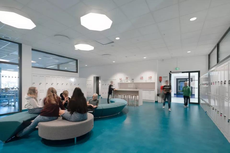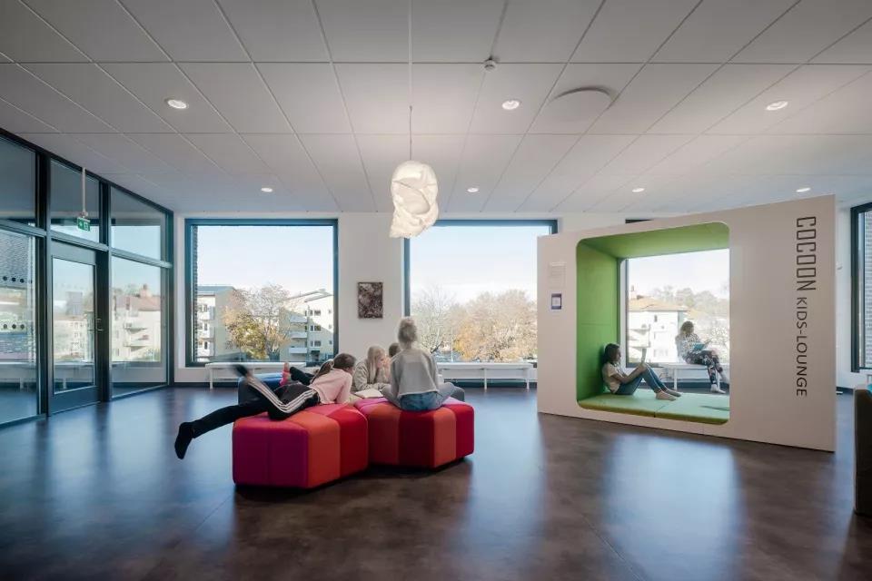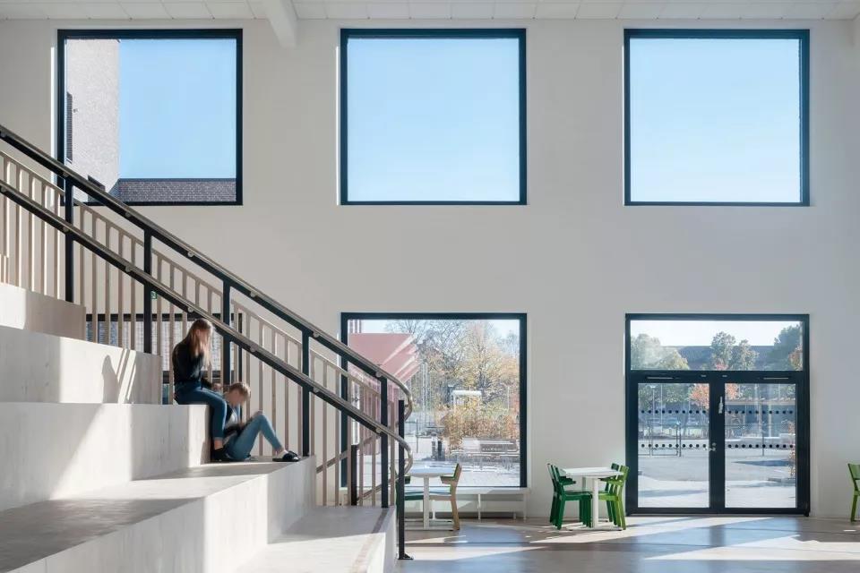 首層的公共區(qū)域結(jié)合了小餐館、廣場、主樓梯和一些共享學(xué)習(xí)空間,有助于提高學(xué)生們的社區(qū)感和集體自豪感。C.F. M?ller事務(wù)所與學(xué)校建造專家Anna T?rnqvist緊密合作,為Tiunda學(xué)校創(chuàng)造了一系列靈活且面向未來的學(xué)習(xí)環(huán)境。