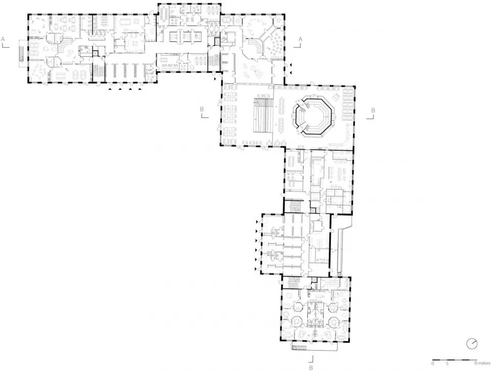 空間設(shè)計在充分迎合常規(guī)布局的同時也創(chuàng)造了許多新的機會,例如更加多樣化的教學(xué)空間和座位布局等。